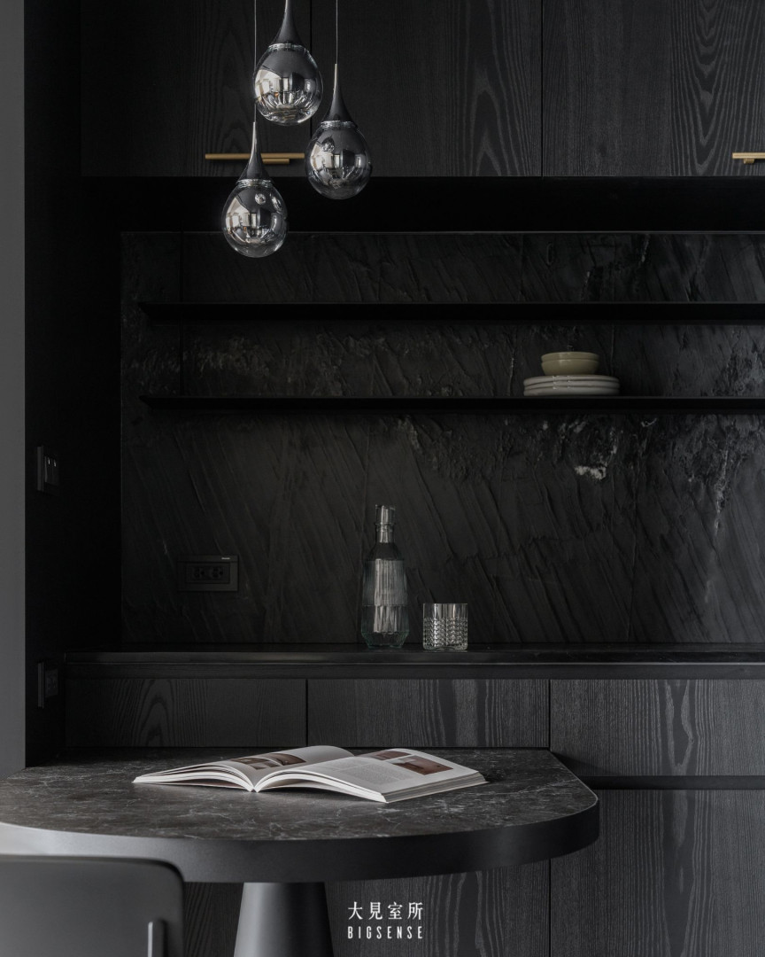 Many people are afraid of using black — they worry it will feel heavy or oppressive. But to us, black can also be gentle and grounding. It’s not just a single color, but a conversation between materials ; the texture of black marble, the warmth of dark wood grain, and the precision of matte metal lines — each shade of black carries its own temperature and tactile emotion, layering the space with subtle richness and depth.